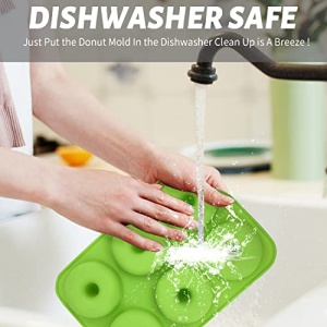 - EASY TO USE & EASY TO CLEAN: It is important to Spray with little Oil before using them and fill the batter carefully. Then simply place the molds on a cookie sheet .Easy to be removed as you can just pop the bottom of the mold up and slide the donut off the extended center. Time saving and quick release. Nothing will stuck. No costing ,safer than aluminum baking pans. After using ,clean by hand with some warm water or Dishwasher Safe .