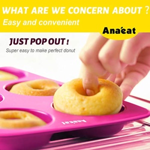 - NON-STICK & FLEXIBLE SILICONE: ANAEAT non-stick silicone donut pan is standard mold to make full size donut . Our molds are flexible and Just pop out after you have the tasty pastry or donuts reached the certain temperature. Easy to stack and storage.