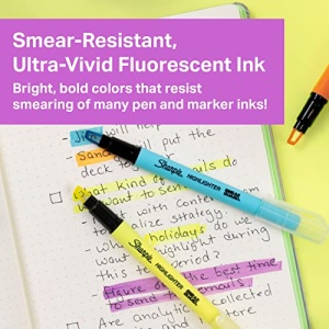 Details: See where you’re marking with the Sharpie Clear View highlighter! A see-through tip allows you to keep your eyes locked on the page and precisely highlight—you’ll always know where to stop! Meanwhile, the innovative blade-style tip lets you switch between both wide and narrow lines. Sharpie highlighters come with ultra-fluorescent ink that jumps off the page while resisting the smearing of many pen and marker inks, so your work stays clean.