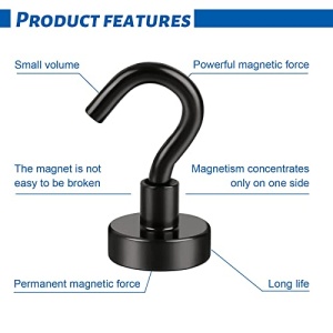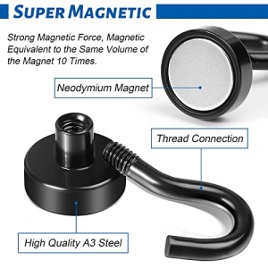 - 【Excellent Black layer Coating】Strong rare earth neodymium magnet hooks are plated with 3 layers of protective coatings – Nickel + Copper + Nickel (Ni-Cu-Ni), which can greatly resist rust and corrosion, making magnetic hooks ideal for long term use.