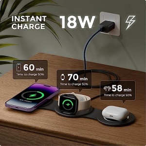 - 【3 in 1 Wireless Charger】: The 3 in 1 Wireless Charging Station with MagSafe Charger for Apple Devices is a great option to organize your home, office, or meeting room. It lets you say goodbye to tangled cords and messy cables, keeping your space neat and organized, making it a convenient charging solution for your busy lifestyle.(Quick charger Included)