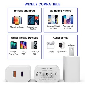 - ♦What You Get: 3 pack Dual-port (PD USB C 3.0 & USB A) iphone charger block (White). 365-day Replacement or Full Refund is Available, Please Feel Free to Contact us for any Problems.