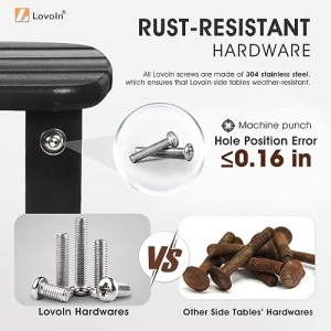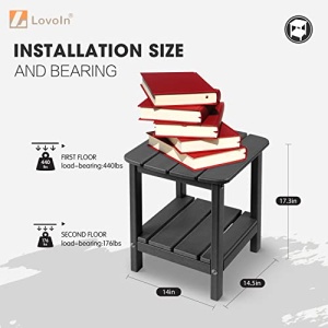 - LOW MAINTENANCE – LovoIn outdoor side tables are made of Sustainable HDPE Materials, which can be recycled and reused. There is no need for painting or staining, but just use soap, water and soft brush to clean easily. No other maintenance is required