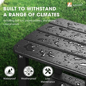 - WEATHER RESISTANT & FADE-PROOF: LovoIn Adirondack tables adopt new Color retaining technology, making the high-quality HDPE patio table built to withstand the elements for long-lasting durability won’t fade, splinter, crack, chip, peel, or rot when exposed to the elements.