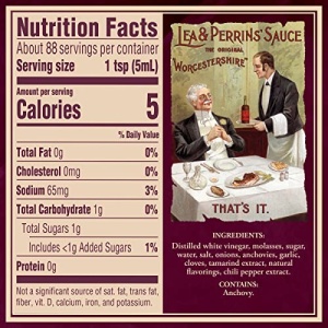 Details: Infuse your family meals with Lea & Perrins The Original Worcestershire Sauce. Our painstakingly crafted, unique and cholesterol-free Worcestershire Sauce is made of molasses, tamarind extract, white vinegar, chili pepper extract and sugar. Use our Original Worcestershire Sauce to make the perfect marinade. Try using our sauce before, during or after the cooking process – whenever you need a boost of complex flavor. Drizzle it on whatever you’re cooking or use it as a spread atop your chicken, beef, grilled salmon or turkey burger. Whether you’re boosting your meatloaf recipe, meatball sauce or even adding it to your Bloody Mary mix, our 15-fluid ounce bottle of Original Worcestershire Sauce will add scrumptious flavor. Made with premium, exotic ingredients from around the globe, Lea & Perrins Original Worcestershire sauce will enhance your dish and make your taste buds crave for more!