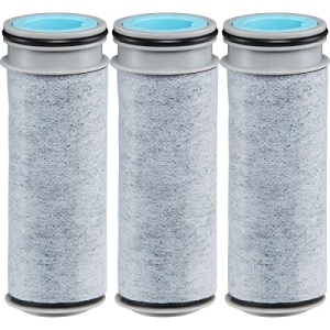 Details: BPA-free Brita Stream Replacement Filters are made with Filter-As-You-Pour technology so you can get filtered water 10X faster compared to the market leading pitcher system. Made with proprietary dual-layer filtration technology and containing activated carbon to reduce chlorine taste and odor., These filters deliver great-tasting water and maintain a healthy level of fluoride, an additive in water that promotes strong teeth (applies to fluoridated municipal tap water). The filters have an easy-hold grip and click button for simple insertion and removal. Change these filters every 40 gallons, about 2 months for the average family, for best performance. The innovative carbon form means no black flecks. One Stream filter can replace 300 standard 16.9 ounce water bottles. Drink cleaner, great-tasting water with Brita.