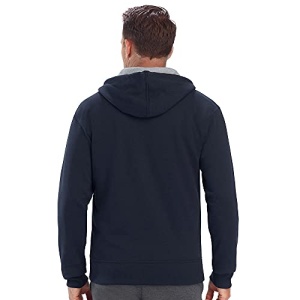 Details: ZIPPED UP STYLE. This Powerblend® Zip-Up Hoodie is the perfect men’s sweatshirt to get you from here to there in cool comfort. Made from a durable fleece fabrication that resists pilling and shrinkage, this hoodie is a lifer, no doubt. You’ll love the double-lined hood designed to keep you warm, while the ribbed cuffs and hem add structure and classic sweatshirt swagger. Two front pockets keep essentials close while the zip-up style lets you choose the look. Pair this sweatshirt with your best Champion joggers or shorts for a custom fit all your own. Stitched C logo sits on the chest while the iconic C logo patch hits at the wrist.
