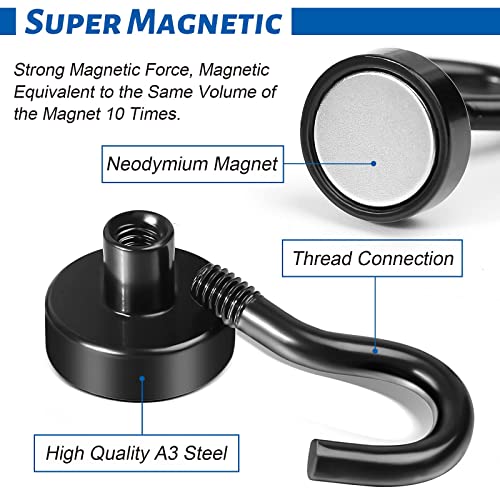 - 【Versatile Use】Black magnetic rare earth neodymium hooks are perfect for hanging grill tools, decorative lights and tool accessories, also be widely used in cruise, fridge, kitchen, locker, workplace office, garage, indoor, outdoor and anywhere there is iron or steel. No drilling holes, No sticky residue, No bolt or screws; Easy to install or remove and reusable.