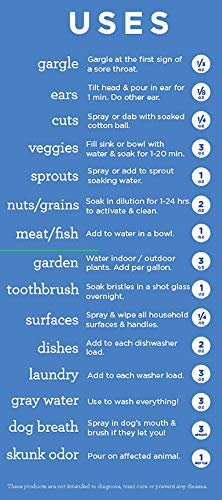 - It Works! The ultimate cleaner for 1st AID cuts and scrapes; BODY ears, throat and diffusers; HOUSEHOLD counters, surfaces, cutting boards, laundry, stains, toothbrush and baby gear; FOOD nuts, seeds, grains, veggies, fruit, meat, fish and chicken; PETS oral care and skunk odor; and PLANTS vase water and sprouts.