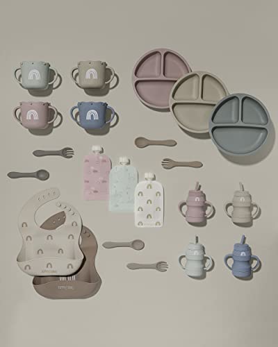 - ✔️ NEW SUCTION BOTTOM: Stays put to avoid spills! Includes 4 suctions on the bottom to keep plates in place while your little one practices using utensils.