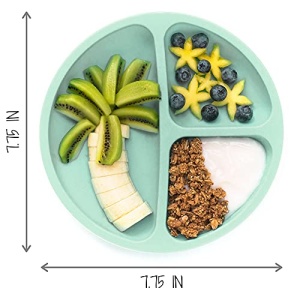 Details: NEW SUCTION BOTTOM: Stays put to avoid spills! Includes 4 suctions on the bottom to keep plates in place while your little one practices using utensils.