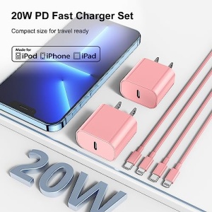 Details: iPhone 14 13 12 Charger Fast Charging(Pink), [MFi Certified] 2Pack Wall Charger Plug with 6ft USB C to Lightning Cable, Fast Charging Power Adapter Cube Brick for iPhone14/13/12/11/XS/XR/8Plus,iPad