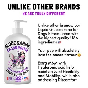 Liquid Glucosamine for Dogs Bacon Flavour with Chondroitin, MSM & Hyaluronic Acid K9 Supplement Hip and Joint Formula Advanced Mobility Joint Pain Relief Senior Advanced Supplement for All Breeds