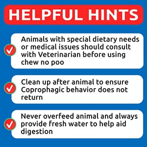 • Nasty Habit Addressed with Science – treats work as stool eating deterrent by reducing stool odor and making poop less attractive to eat. In addition, by improving proper digestion, treats reduce the urge to eat stool in the first place. Actual results may vary and usually occur after 2-4 weeks of regular use.