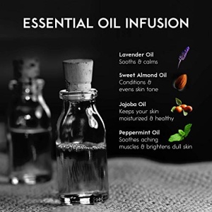 - Activated Charcoal and essential oils minimize pores and removing dirt and buildup from each pore, making it a powerful scrub.