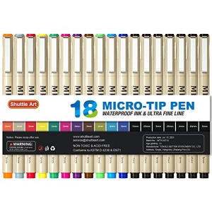 Shuttle Art 18 Pack Micro-line Pens, Waterproof Archival Ink, 11 Colors in 0.3MM Felt Tip & 7 Blacks in Sizes 0.15MM to 0.5MM Multiliner For Journaling Technical Illustrating Drawing Manga Zentangle