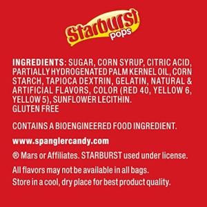 Details: Starburst Lollipops are filled with your favorite fruit chews and are a fun, new way to enjoy Starbursts. Each bag contains individually wrapped pops available in lemon, cherry, strawberry and orange flavors.
