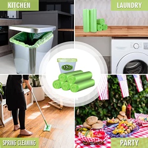 - 【CARING DESIGN】 Green means life, fertility, renewal, and resurrection. These traslucent green small trash can bags would absolutely boost your mood and soothe your stress in daily use.With these clear green compostable trash bags, you can easily sort out the trash for recycling. Handy perforation for easy dispensing. The star sealed bottom is built at 450℉ for a leak-proof disposal. Inwaysin biodegradable trash bags are well fitted in the 20 gallon trash bags for compactor. Simple & Light Pack for better future of our planet.