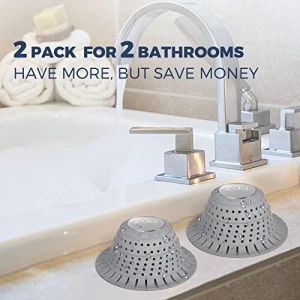 - 2 Pack for 2 Bathrooms — A must-have bathtub drain protector for big house/apartment with more than 2 bathrooms. Or one for the bathtub, another one for the tub sink. This VALUE SET OF 2 PACK let you have more, but save money on your home sewer protection.